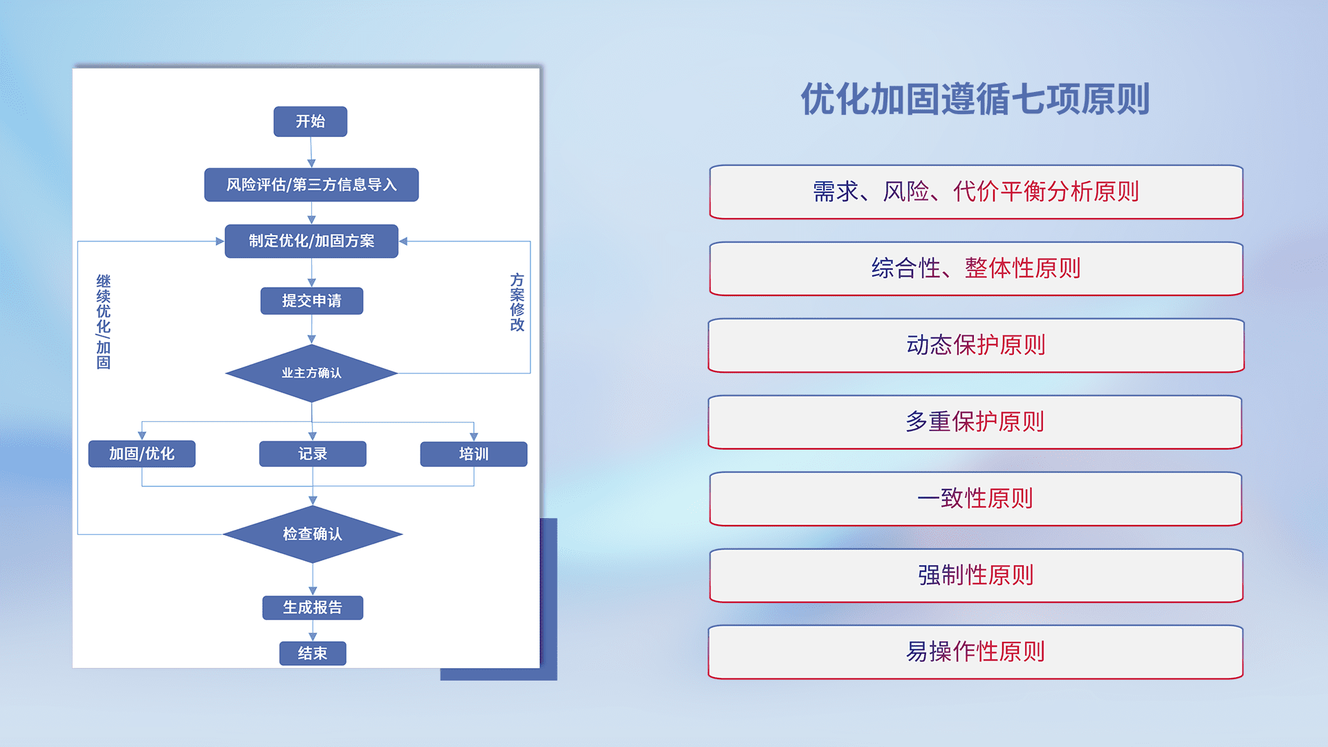最大程度利用现有资产,,对评估发现的问题进行封堵与整改,,,,防止漏洞被利用,,,提升整体网络安全性,,,,为客户带来高标准的优化加固服务。。